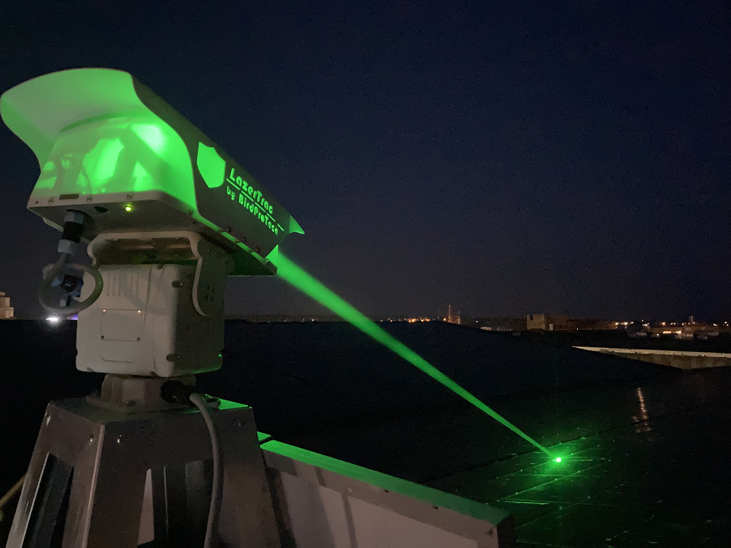 - Le LazerTrac LZT1000 dispose d’une portée supérieure à 400 mètres en pleine journée. Le faisceau lumineux est projeté par une optique laser montée sur un support motorisé à 360°. Ce système permet de balayer des zones très étendues. Le dispositif est programmable : il est possible de définir des périodes de fonctionnement, ainsi que des zones spécifiques à protéger.